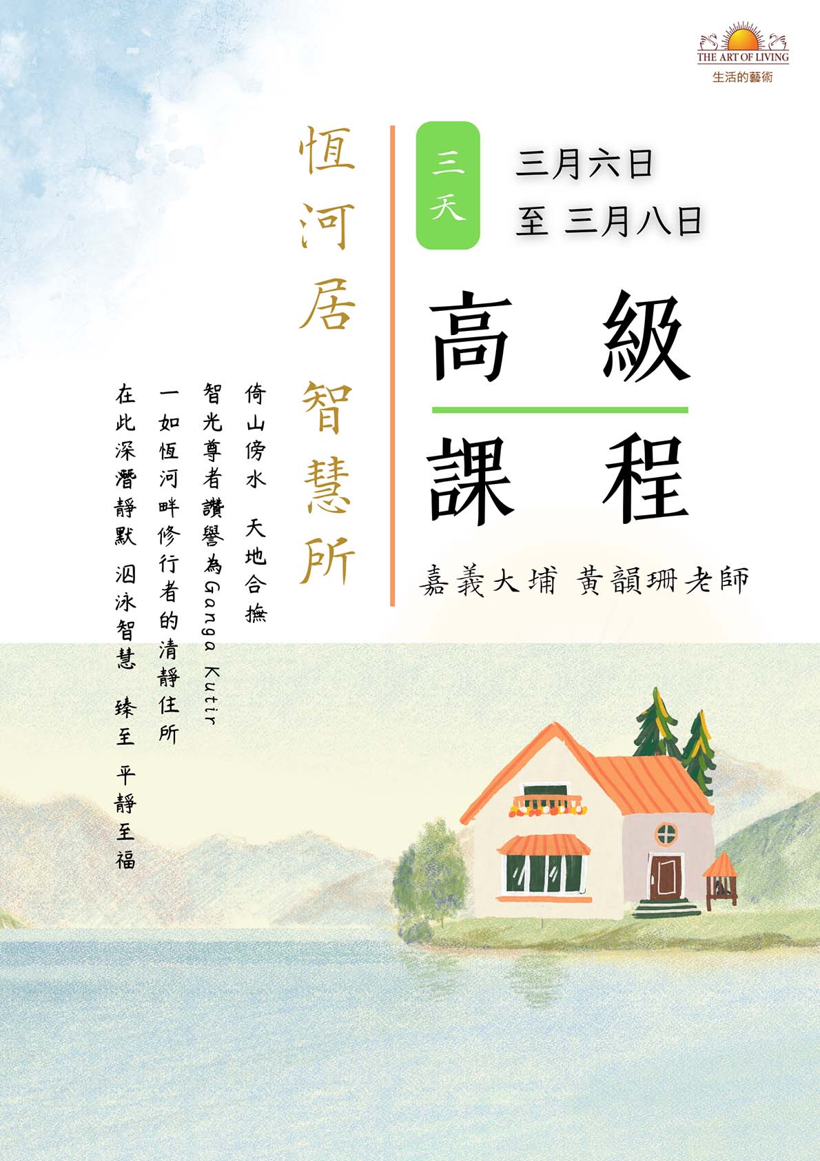 特價 上一項商品 下一項商品 高級課程@嘉義大埔 3/6-8(住宿)|韻珊 老師 指導者|黃韻珊 日 期|3/6(五)~3/8(日) 時 間|住宿課程:週五13:30-週日17:30 NT$6,800 – NT$10,800價格範圍:NT$6,800 到 NT$10,800 身份類別 請選取一個選項一般大眾全職學生(18–25歲) / 出家眾清除 高級課程@嘉義大埔 3/6-8(住宿)|韻珊 老師 數量 加入購物車 貨號: 20260306-08-ADV-黃韻珊 分類: 高級課程, 進階課程 標籤: 3月, 嘉義 描述 額外資訊 描述 恆河居 智慧所 倚山傍水 天地合撫 智光尊者讚譽為Ganga Kutir一如恆河畔修行者的清靜住所在此深潛靜默 泅泳智慧臻至~ 平 靜 至福 🧘♀️課程指導:黃韻珊📅課程時間:2026/3/6(五)~3/8(日)住宿課程:週五13:30報到 – 週日17:30結束📍課程地點:嘉義大埔 💰課程費用:10,800元:一般大眾6,800元:18-25歲全職學生/出家眾*課程費用含食宿🍽️🛏️**交通接駁另計*❄️感謝場地主人贊助生活的藝術課程場所❄️💬課程諮詢:美玲老師 0982-501-182千桓老師 0983-9799-83淑君老師 0922-002-596 瑛秀義工 0930-766-208 ⚠️報名注意事項:🔓 免登入、免註冊:直接選課→加入購物車→結帳→綠界付款🚫 一人用一個email報名,勿使用同一個email重複報名相同課程📝 幫他人報名,請先登出網站。並於結帳表填上對方姓名/對方的Email,由系統自動為其建立帳號。 瞭解更多 高級課程 額外資訊 身份類別 一般大眾, 全職學生(18–25歲) / 出家眾 Opens in a new window Share on Facebook Opens in a new window Mail This Product 相關商品 快速檢視 永恆過程(前世今生), 進階課程 快速檢視 永恆過程(前世今生)@台北-瀛之老師加入購物車 快速檢視 初階課程, 自然三摩地心法, 靜心 特價 快速檢視 自然三摩地靜心@台北中山中心 2/27-3/1|傅慧凌 老師選擇規格 此產品有多種款式。 可在產品頁面選擇選項 快速檢視 高級課程, 進階課程 特價 快速檢視 高級課程@台北MAG教室 4/3-6(非住宿)|韻珊老師選擇規格 此產品有多種款式。 可在產品頁面選擇選項 快速檢視 永恆過程(前世今生), 進階課程 快速檢視 永恆過程(前世今生)@台北-盈毓老師加入購物車